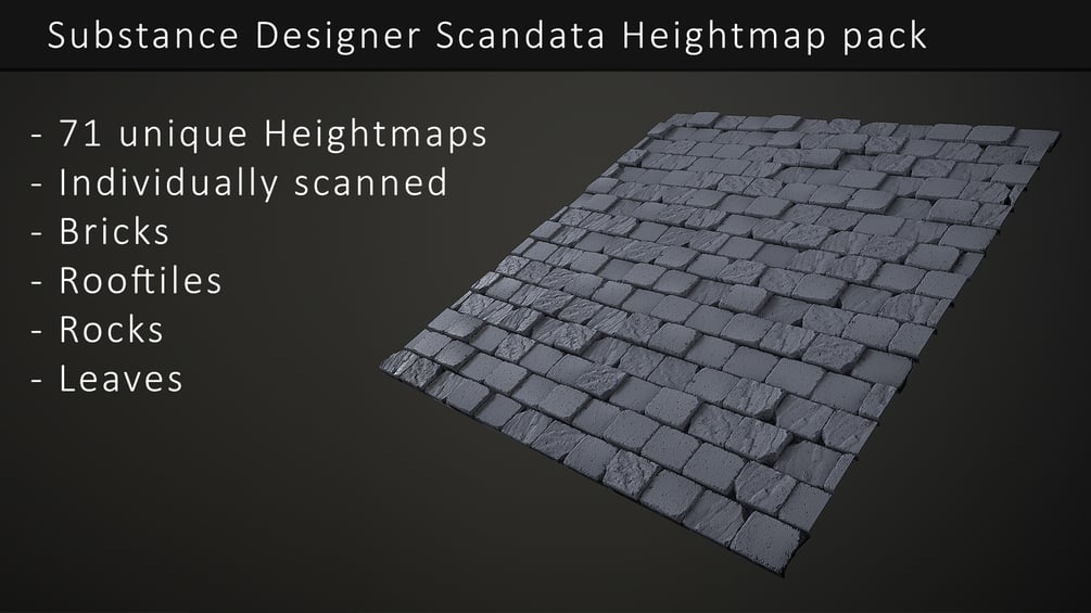 The idea for this pack begin with the struggle of making scans more flexible and Substances more realistic. In this pack I have taken a different approach on both scanning and working in Substance. Long story short I went to the hardware store and bought individual construction components like bricks, roof tiles and so on and scanned each piece individually. After that i baked down the highpolys into height maps from all desired angles.